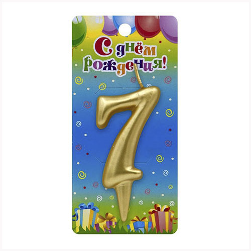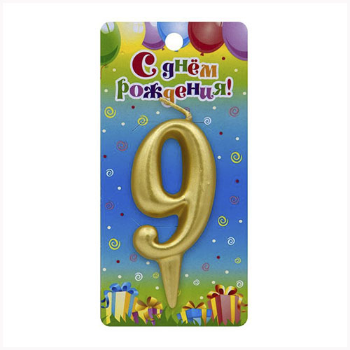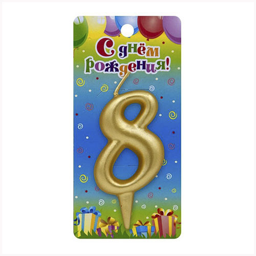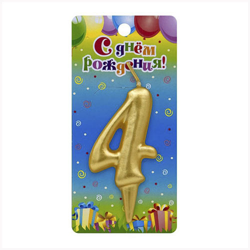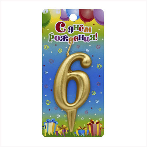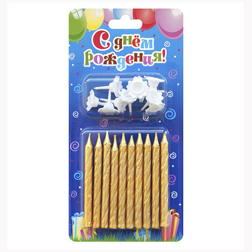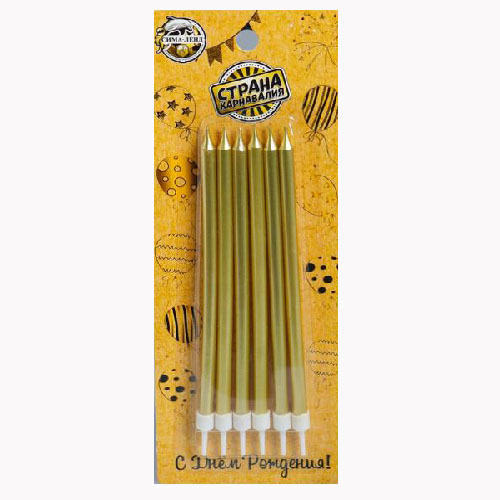 Набор свечей "С Днём рождения" 6 шт, высокие, Золотой металлик