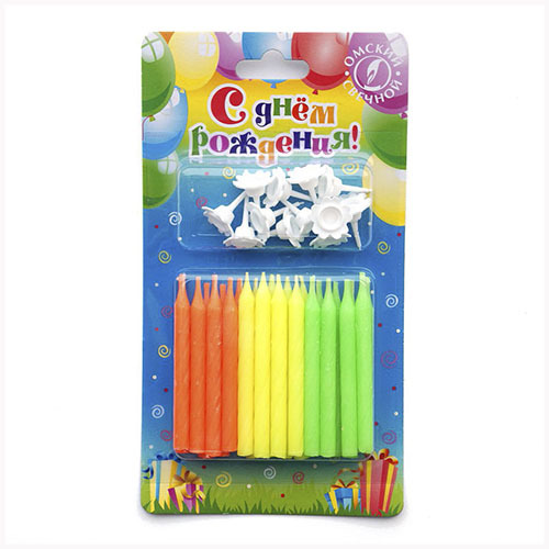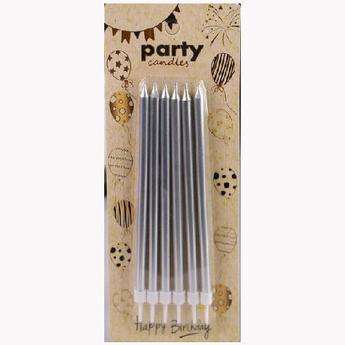 Набор свечей "С Днём рождения" 6 шт, высокие, Серебристый металлик